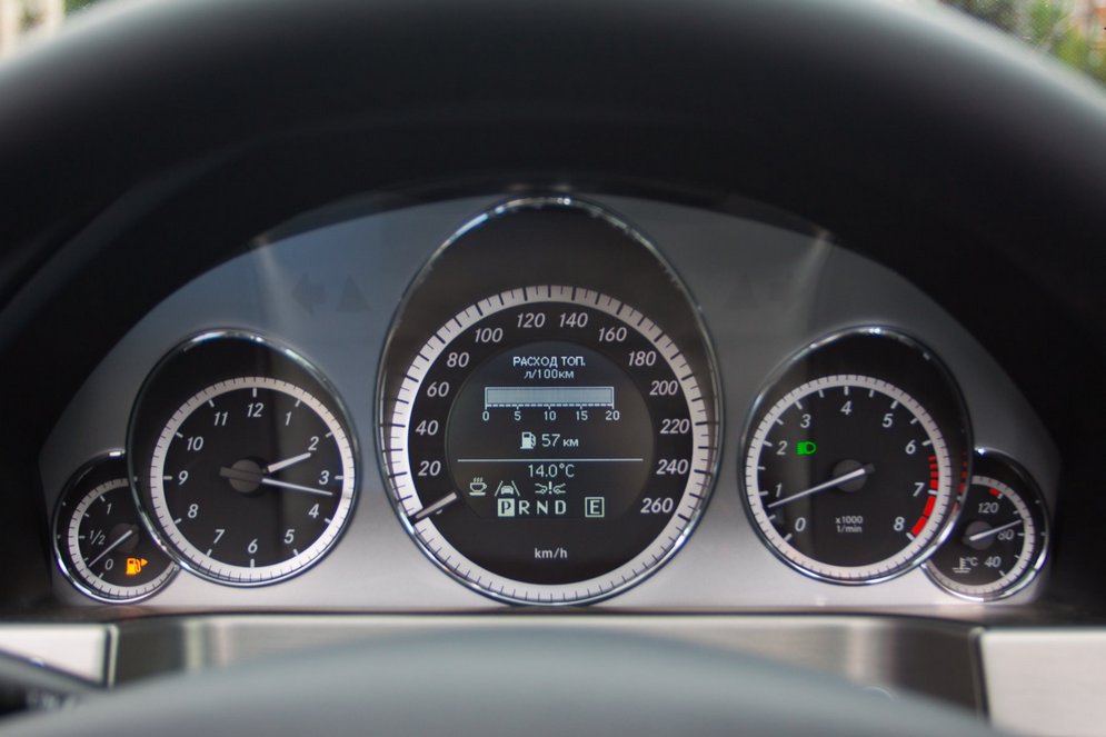 Все мои действия по управлению немецким чудом техники сводились к редким поворотам руля. И всё. Остальное белоснежный Mercedes-Benz E200 делал сам. Наш седан был оснащён активным круиз-контролем Distronic Plus, который умеет не только держать заданную скорость, но и поддерживать скоростной режим до впереди идущего автомобиля, а при необходимости самостоятельно тормозить вплоть до полной остановки и, наоборот, разгоняться, когда «преграда» разглядит приближающийся и мигающий дальним светом седан. Как я буду ездить по трассам без этой штуки, теперь просто не представляю. К хорошему быстро привыкаешь, а с Mercedes Benz Е-класса – особенно. Дорога, кстати, освобождалась очень часто. Завидев в зеркале заднего вида трёхлучевой прицел с ксеноновым наведением, из левого ряда перестраивались и старые «Жигули», и чёрные тонированные джипы без номерных знаков... Вот она, магия Mercedes-Benz!
