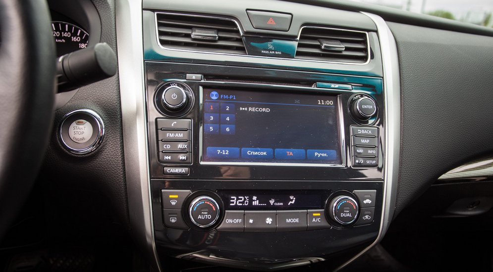 Абсолютно противоположная ситуация в салоне Teana: тут использованы по-настоящему качественные и добротные материалы. Даже панель, имитирующая карбон, не портит впечатления (хотя и понимаешь, что машину такого класса нужно брать со светлым салоном). Уровнем отделки проникаешься сразу, но вот ощущение именно роскоши так и не приходит.