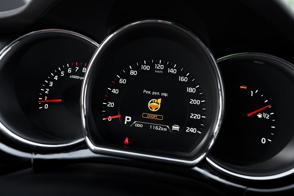В Kia установлена система FlexSteer, которая в зависимости от дорожных условий и личных предпочтений позволяет варьировать усилие на руле и степень обратной связи. Система работает в трёх режимах: Comfort, Normal и Sport. В первом руль можно вращать одним пальцем, во втором появляется что-то похожее на сопротивление, и только «спорт» — самый информативный алгоритм взаимодействия человека и Сида. Правда, усилие настолько искусственное, что при городском активном маневрировании такой режим неудобен.