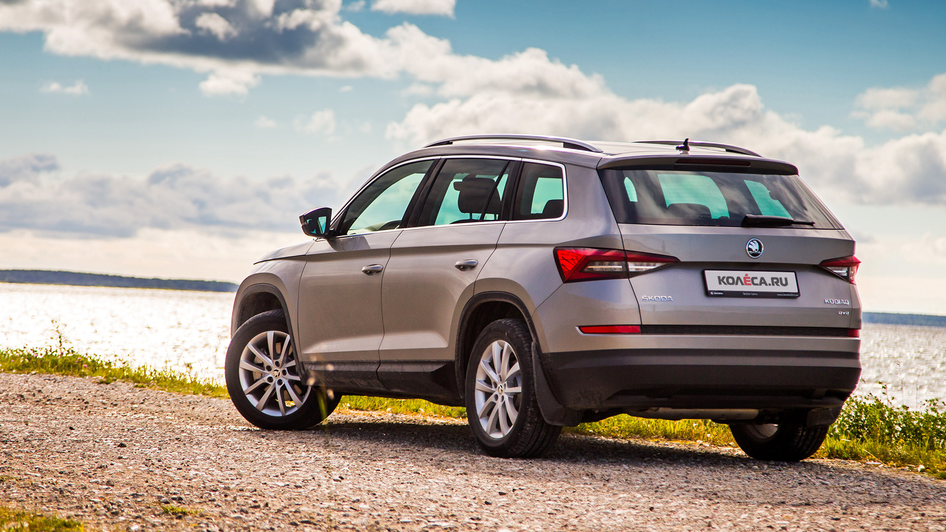 А вот с дизайном никаких «оптических иллюзий» нет: все так же ладно и складно, как и на рекламных картинках. Двухсегментная головная оптика, судя по всему, постепенно входит в число шкодовских трендов, а резкие острые линии в него уже давно вошли, и Kodiaq стал еще одним «образчиком кубистического дизайна с кристаллическими элементами». Выглядит он и вправду здорово, а поскольку ругать за «непрактичные выштамповки» у нас принято только Весту, явных недостатков у него просто нет. Даже корма, не слишком массивная для семиместного автомобиля, идет ему в плюс: отчасти этому поспособствовало увеличение колесной базы относительно соплатформенного Tiguan на заметные 114 миллиметров.