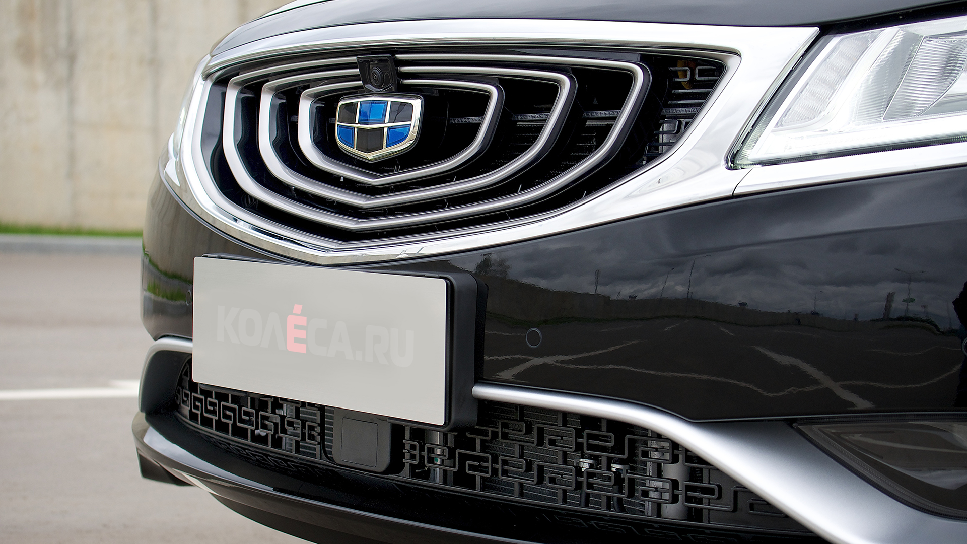 Хромированные внешние детали присутствуют, но их количество и размер вполне сообразуются с европейским чувством меры. Облицовка радиатора, нижние боковые молдинги, окантовка окон, вставки в окрашенные в цвет кузова дверные ручки и планка на багажнике с надписью Geely — вот, собственно, и все. Ах да, еще накладка на переднем бампере — но она матовая.