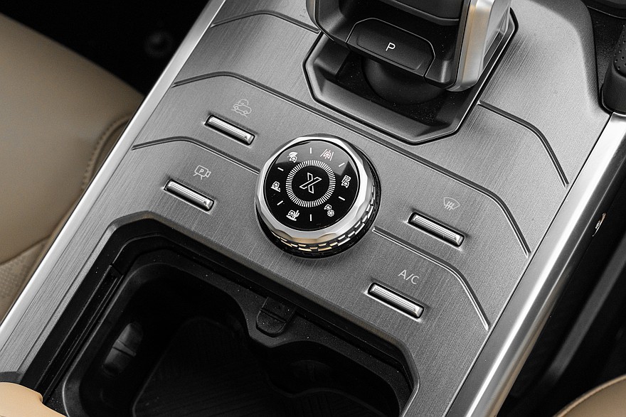 Как это сейчас принято, главной доминантой в интерьере Jetour T2 является огромный 15,6-дюймовый сенсорный экран медиасистемы. И вот тут у владельцев начинаются претензии: «Полное отсутствие кнопок. Это очень неудобно с учетом ужасного климат-контроля»; «Про замену удобных кнопочек и крутилок на дурацкий экран посреди торпеды писать не буду, эта "замечательная" тенденция добралась и до автомобилей ценой за 20 и более миллионов, БМВ i7, например». По счастью, кое-какие физические органы управления все же остались: режимы движения (три «асфальтовых» – «Эко», «Стандарт» и «Спорт» плюс три внедорожных «Грязь/Песок», «Снег» и «Камни») выбираются при помощи ротор-контроллера на консоли. Есть еще и режим «Х», который включается нажатием кнопки в центре «шайбы», и тогда вы отдаете выбор режима на откуп электронному разуму автомобиля.