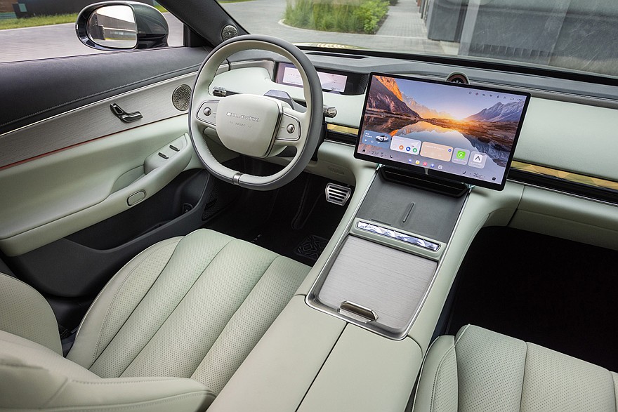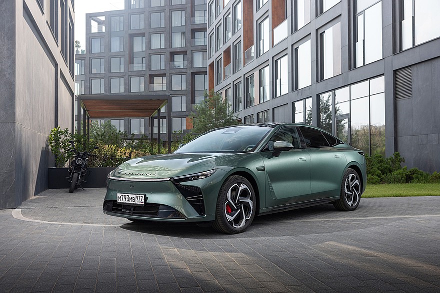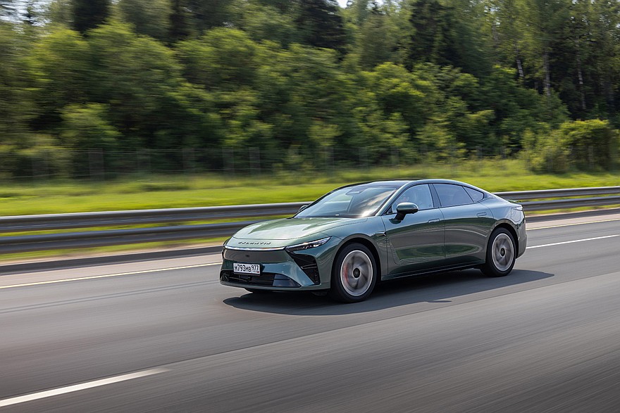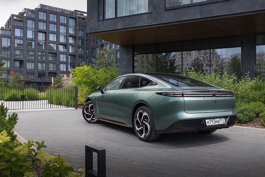 Вопрос справедливый, потому что в Китае продаются оба варианта. Да и для России изначально была заявлена электрическая версия, но в итоге продажи решили начать с гибридной как более универсальной. Под капотом здесь 1,5-литровый турбомотор на 143 лошадиные силы. Но он даже не учитывается в расчете транспортного налога, ведь с колесами двигатель не связан, а только заряжает батарею, работая как генератор. Главенствуют здесь два электромотора общей мощностью 469 лошадиных сил. Показатель куда более впечатляющий, и не единственный. Например, разгон до 100 км/ч занимает всего 4,6 секунды. А останавливать автомобиль с высокой скорости помогут 6-поршневые суппорты на передней оси и вентилируемые тормозные диски «по кругу».