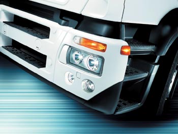 Очень удобны дверные панели: отштампованные в них углубления позволяют и бутылку с водой поставить, и документы с атласом дорог положить, и тряпку для вытирания рук бросить. Что касается практичности используемых материалов, то и здесь все в порядке: серый пластик легко моется, а тканевая обивка без проблем чистится, что называется по месту. Грузовик получил также новую систему охлаждения, которая, по уверениям создателей, позволяет экономить топливо. Благодаря системе Multiplex на 45% уменьшено количество проводов. За счет использования ABS и EBS сокращен тормозной путь автомобиля с полной нагрузкой. Например, при скорости 85 км/ч величина тормозного пути 40-тонного автопоезда до полной остановки сокращается на 16 м, а это ни много ни мало – длина четырех "Жигулей", поставленных бампер к бамперу. Цена всех нововведений – плюс 4% к стоимости базовой версии EuroTech.