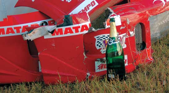 | А Дудукало и Черевань доказывали, что никакая авария не способна списать их в утиль. Ни один не поехал на пит-лейн плакаться в жилетку механикам: оба ненадолго сбавили темп, поняли, что машины едут, и понеслись вперед. Все это происходило под скрежет стеклопластика – искореженные детали обвеса на поворотах цеплялись за асфальт. Звукоряд – потрясающий! | А вот Аркадию Павловскому к механикам ехать пришлось. Было обидно – ведь петербуржец стартовал с поула. Но ехать на такой машине было все-таки… проблематично. Кстати, езда с открытым багажником – это чисто "питерская фишка" – в прошлом году на Невском Кольце ее опробовал Алексей Глебов. Преемственность, однако. |