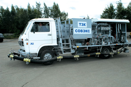 Также весьма необычна и различная тепловая техника. Вот, например, универсальная теплообдувочная машина (УТОМ): установленный позади грузовика (вернее, цистерны) двигатель ВК-1 производит мощнейший ветродуй, сметающий сухой снег на расстоянии 20 метров от сопла агрегата. А если этот же двигатель приделать спереди кабины, то получится тепловая машина, которая может растапливать ледяную корку, образующуюся на ВПП. Правда, это не слишком-то эффективная штуковина: рабочая скорость движения такой машины – порядка полутора километров в час, а расход керосина – аж 1 тыс. литров в час! Так что "фен" используется лишь в крайнем случае, в основном же борьба с обледенением ведется при помощи химреагентов – жидких либо твердых. Для распыления и разбрасывания которых также существуют специальные машины.