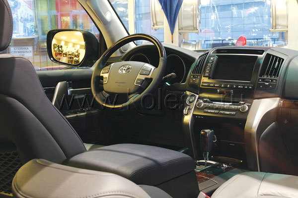 * И, наконец, моторы. Новый Land Cruiser оснащен дизельным двигателем D-4D V8 объемом 4.5 л, с четырьмя клапанами на цилиндр. Развивает такой мотор неслабые 650 Нм крутящего момента при 2 800 об/мин и 286 л. с. мощности при 3600 об/мин. На автомобиль устанавливается новая шестисту пенчатая автоматическая транс миссия с возможностью ручного переключения передач.
