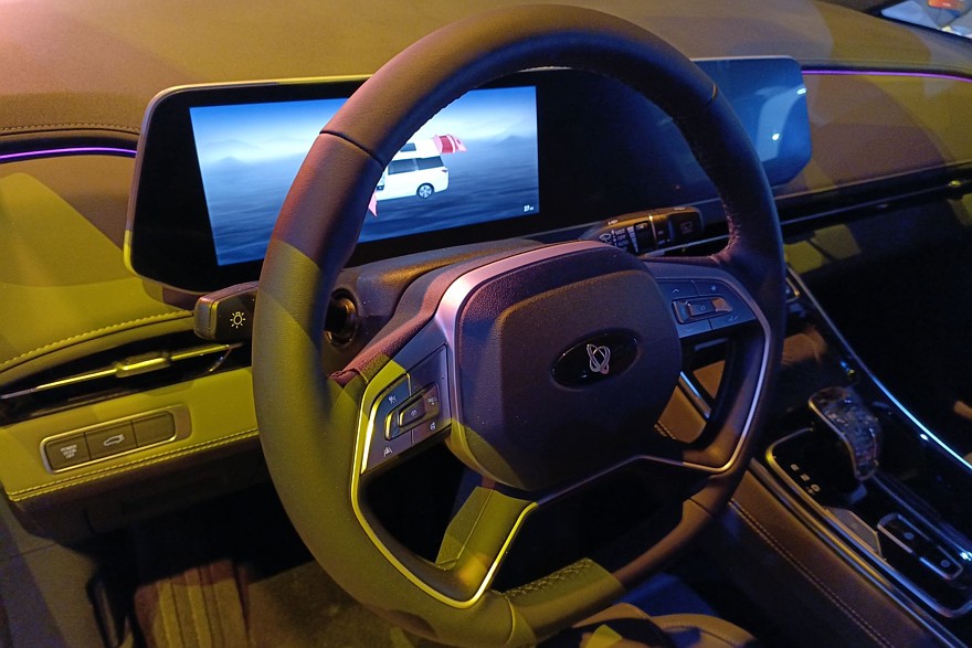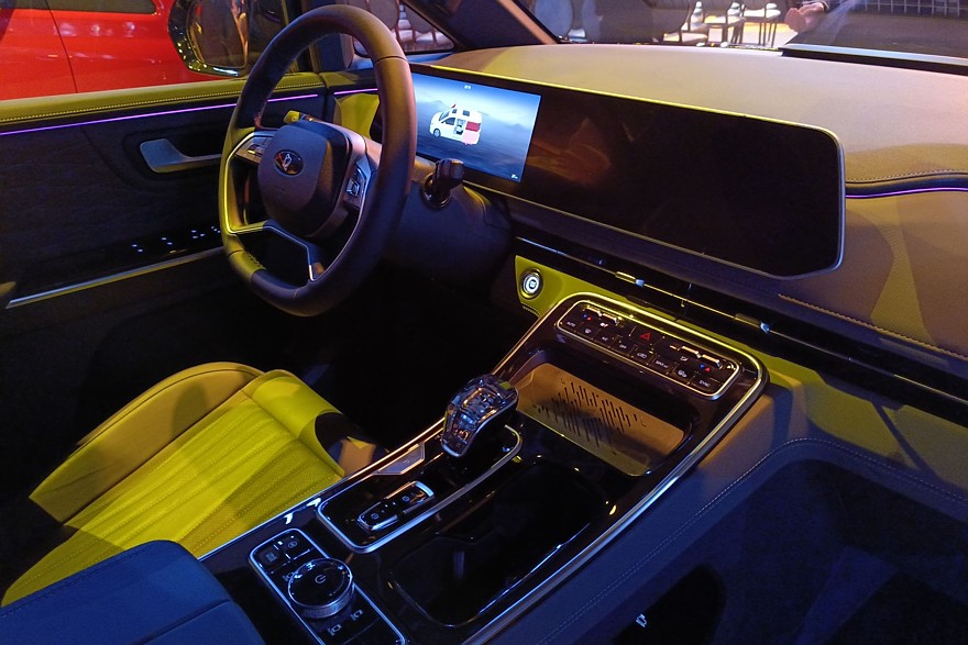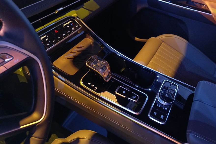 Модификация бизнес-купе будет отделана еще круче с дополнительной вибро- и шумоизоляцией, динамической подсветкой, собственной мультимедийкой и персональным планшетом для управления функциями салона. То есть, это будет самый «жирный» VIP в лучшем смысле этого слова. Хотя рояльный лак на подлокотниках дверей и на центральной консоли автора этих строк как-то не впечатлим. Видимо, он (автор, а не лак) еще не созрел до такого неимоверного премиума. Да и массивный «хрустальный кристалл» селектора коробки передач вызывает в памяти смутные ассоциации с приснопамятной розочкой в эпоксидке на дедовской «трешечке». Трудно пережить такую шикарность без подготовки, до нее еще надо дорасти. Хотя в целом видно, что производитель постарался вложиться в машину. Она изготовлена плотно и аккуратно, без откровенных ляпов при сборке и попыток сэкономить на качественных материалах. Детали хорошо подогнаны, зазоры выдержаны. А премиальность лишний раз подчеркивается большим, чем у SF1, объемом топливного бака – 65 литров.