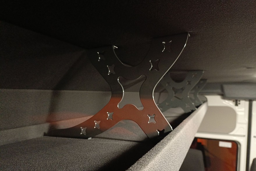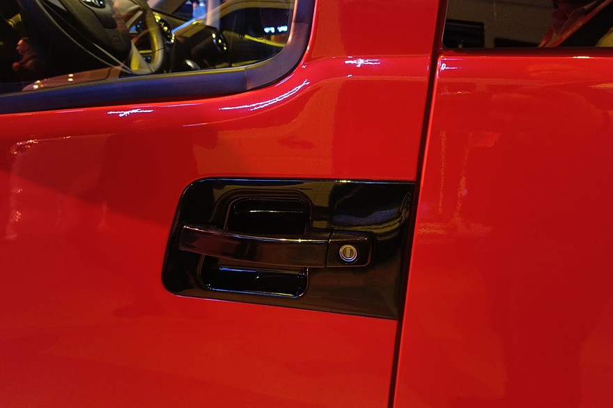 Сдвижная дверь пока только с одной стороны. Если появится запрос, возможно, появится и вторая на противоположном борту. Хорошо, что она не предполагает смелого дизайнерского решения, которое сразу бросалось в глаза на красном фургоне, стоявшем по соседству – черное обрамление дверной ручки. Это действительно отважно придумано. Вероятно на случай, если кто-то ручку не заметит.