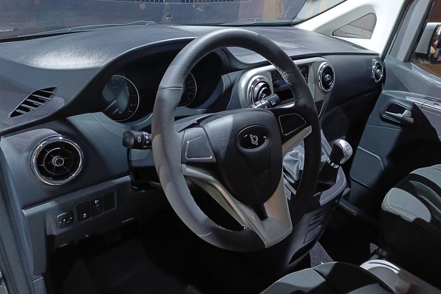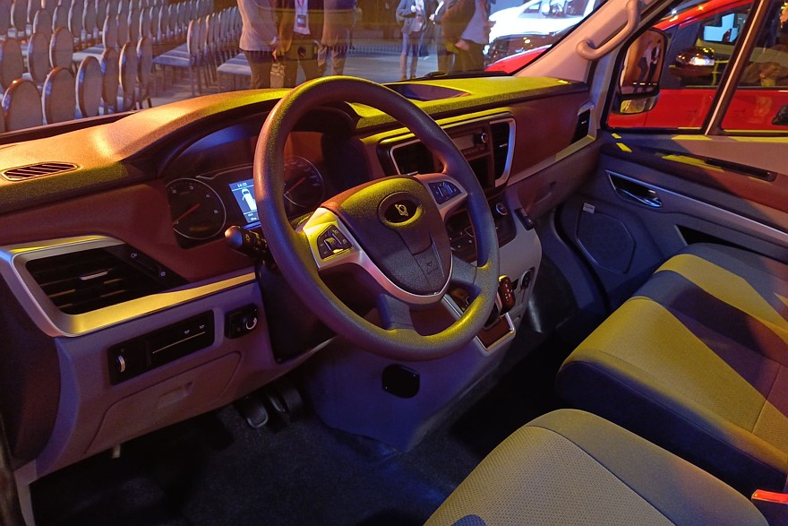 Машина уже довольно серьезно локализована. Утверждается, что в ней, помимо мотора, используются российские телематический блок, АКБ, радиаторы, сиденья, воздушный отопитель салона и остекление. Судя по веселенькому дизайну перегородок на полках под потолком салона, они тоже могут быть нашего производства. Кроме того, у автомобиля оцинкованный кузов, изготовленный в России. Ожидается, что 2026 год модель встретит уже на 70% отечественной.