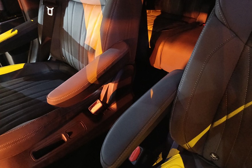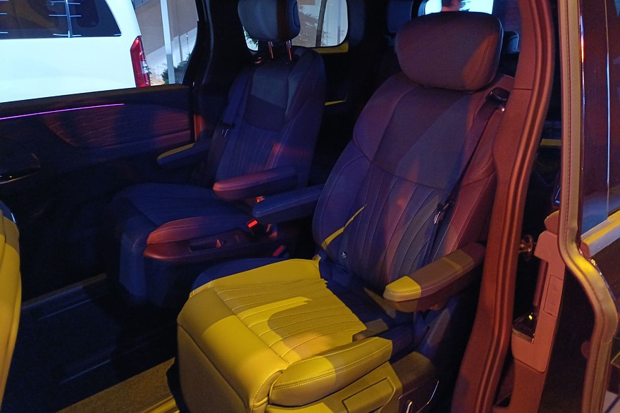 У люксового минивэна 2-литровый «евро шестой» мотор N20TG мощностью 237 л. с. и моментом 390 Нм, агрегатируемый с 8-ступенчатым автоматом. Предлагаются два стандартных исполнения модели: 7-местное и 4-местное в формате бизнес-купе. Существует и широкая вариативность кастомизации и трансформации салона. Как раз то, чего по статусу не положено SF1. Уже в базе машина щедро укомплектована шестью подушками безопасности, цифровой приборкой, климатом, электроприводом обеих сдвижный дверей и крышки багажного отделения, адаптивным круизом и массой всего электрорегулируемого и электронноконтролирующего. Да еще и с камерами. Производитель уверяет даже, что задний диван можно трансформировать в полноценное спальное место. К сожалению, на презентации сделать этого не удалось, но вот попытки добраться до этого дивана оказались, мягко говоря, трудозатратными. В общем, на полноценном тесте обязательно рискнем провернуть операцию по его раскладыванию в полном масштабе.
