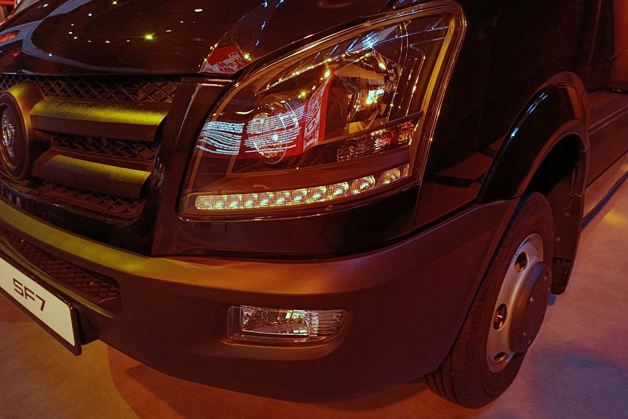 Sollers SF7 – самый большой микроавтобус в линейке. Изначально он должен был быть Атлантом XL, но не стал им. И это, наверное, самое интересное. Дело в том, что это изначально не JAC, но с таким же, как у «пятерки», локализованным джаковским мотором и фундаментально мерседесовской родословной. Идет она от совсем не известной в нашей стране компании Vanche, которая выпускает свои линейки малотоннажной техники V6 и V7 по мотивам Mercedes-Benz Sprinter W906 родом из нулевых.