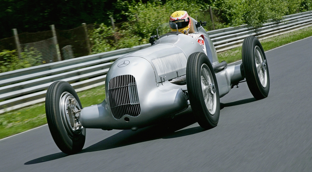 Окрашивать кузова своих гоночных болидов мерседесовцы прекратили 9 июня 1934 года, когда они заявили на старт этапа Гран-при на Нюрбургринге новый болид W25, по традиции выкрашенный в белый цвет. Снабженный 300-сильным карбюраторным двигателем автомобиль сразу стал претендентом на победу, если бы не одно «но». По условиям технического регламента, масса автомобиля не должна была превышать 750 кг. На контрольном взвешивании вечером перед гонкой выяснилось: автомобиль не проходит по регламенту, так как его масса на несколько килограмм больше. До гонки оставалась ночь, и серьезных изменений в конструкцию машины внести попросту бы не успели. И все же выход был найден.