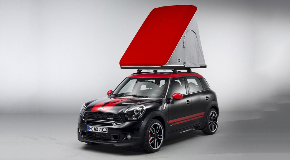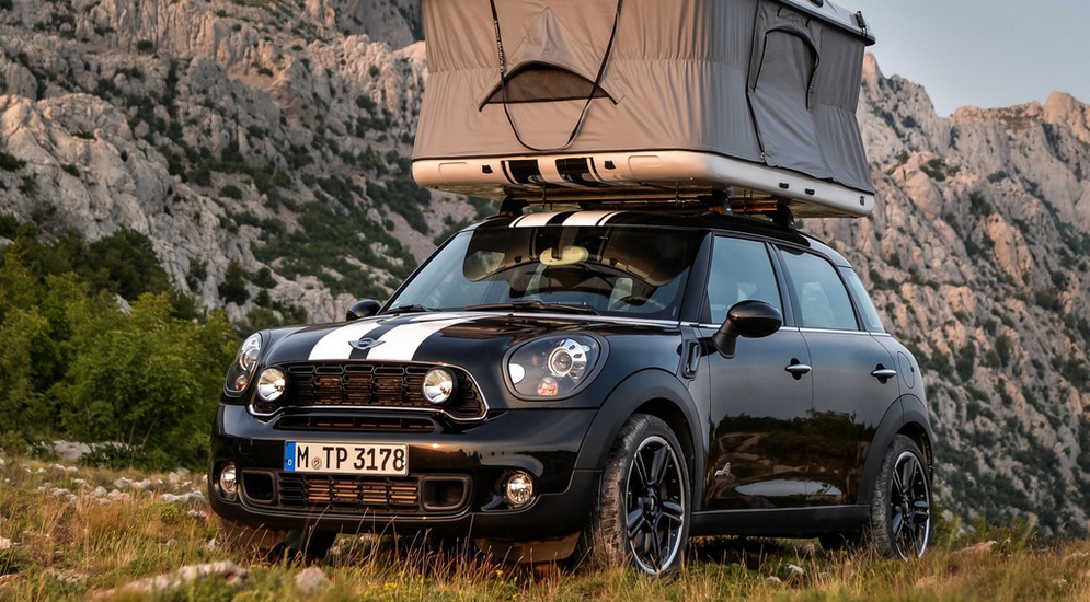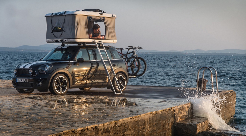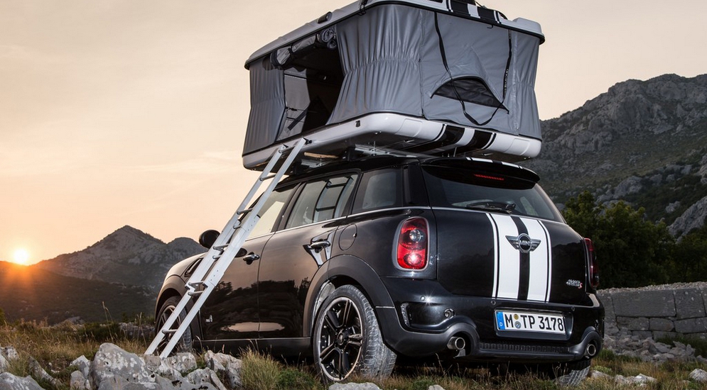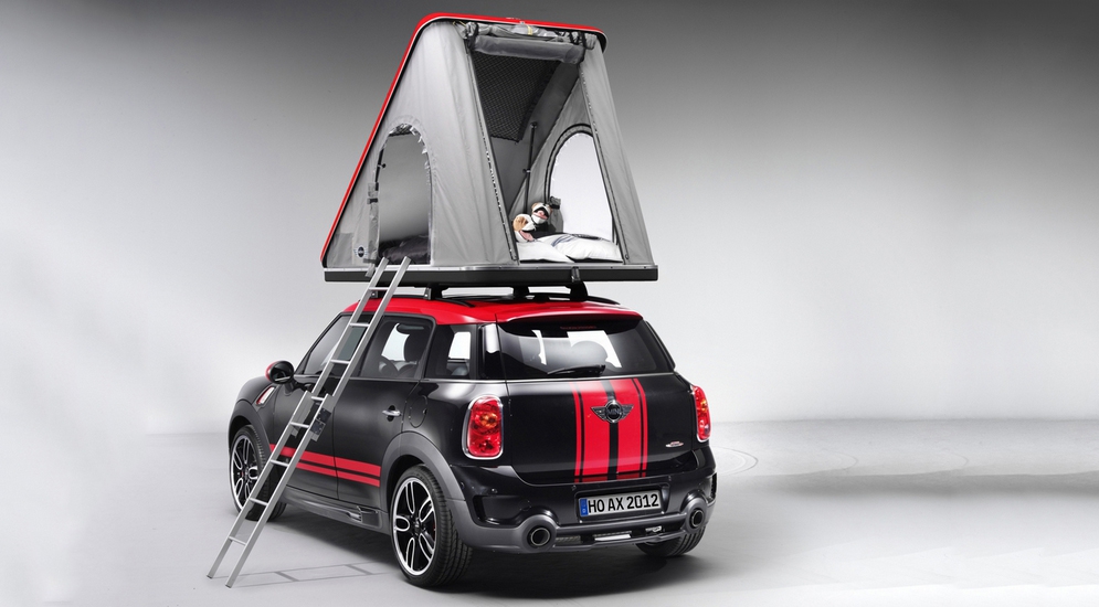 Принимая в расчет вышесказанное, стоит рассмотреть компактный «дом на колесах», который с 2010 года выпускают британцы MINI. Отчаянно стремясь выйти за рамки «городского автомобиля», они представили свою флагманскую модель, Cooper S в виде компактного передвижного жилища. Причем вся «жилплощадь» заключена в пластиковый кожух толщиной 20 см, стратегически размещенный на крыше. В разобранном виде эта палатка способна принять на ночлег аж двух человек, которые могут обезопасить себя, просто убрав лестницу.