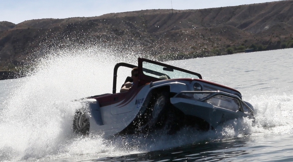 Долгое время на эту нишу никто не обращал внимания, пока в 2010 году на рынок не вышла компания WaterCar. «Мы – строители самых забавных машин на планете!» – заявила о себе эта калифорнийская формация, представив публике серию разработок утилитарного автомобиля-катера Panther. Сходства с настоящей пантерой сие авто не имеет вовсе. Являясь «прокачанным» представителем семейства SUV, данный зверь одет в кричащие расцветки, бодро носится по песчаным карьерам и охотно лезет в воду. В оснащении Panther калифорнийцы делают акцент на двигателе – 24-клапанном V6 VTEC от Honda. По словам производителя, этот мотор совмещает в себе надежность и эффективность в потреблении топлива. При объеме в 3,7 литра его максимальная скорость на трассе достигает всего 130 км/ч. Зато на воде эта кошка чувствует себя гораздо увереннее, выдавая 72 км/ч.