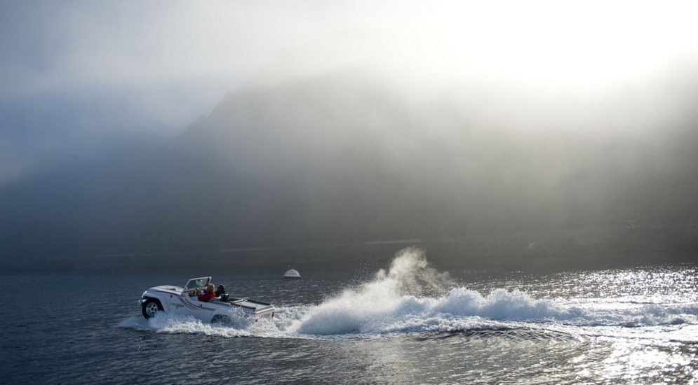 Любопытно, что из наземного в водный транспорт Panther трансформируется всего за 15 секунд! Процесс втягивания колес внутрь авто осуществляется благодаря уникальной гидравлической системе. Детище WaterCar имеет облегченный стеклопластиковый корпус, в котором для лучшей плавучести все пустоты заполнены пенополистиролом. Эту конструкцию одобрила даже Служба береговой охраны США, которая и стала одним из первых клиентов компании. Несмотря на высокую стоимость – $100 тысяч в базовой комплектации, спрос на Panther превысил предложение. Поэтому со второй декады 2013-го из штучного эта амфибия поступила в мелкотиражное производство.