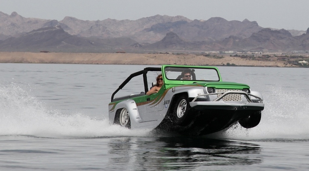 Данная аксиома признаваема всеми последователями теории об оживших мертвецах, поэтому автомобиль, умеющий плавать, в столь безумном мире будет актуальнее некуда. А ведь подобные амфибии появились на свет раньше всех этих апокалипсических фантазий. Универсальная техника с понтонным днищем и влагоизолированными силовыми узлами разрабатывалась армиями многих стран. Наиболее хорошо себя зарекомендовал проект Volkswagen Typ 128 Schwimmwagen. Этот плавающий автомобиль повышенной проходимости успешно использовался Вермахтом на фронтах Второй мировой. Однако после войны подобные технологии практически не применялись (жалкий тираж Amphicar Model 770 не в счет).