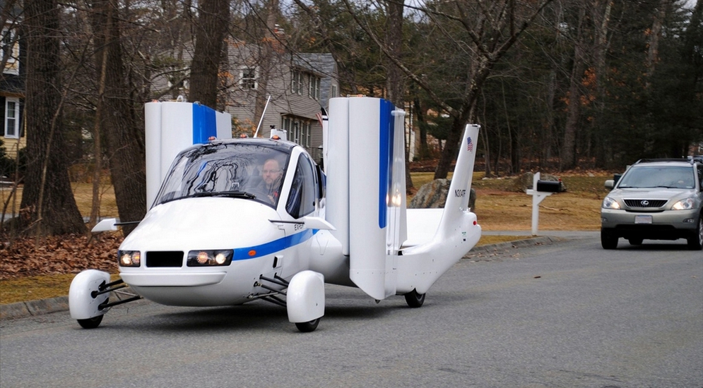 Впервые автомобиль-самолет со сложным названием Terrafugia Transition Flying Car был представлен общественности в 2012 году. Инженеры формации, основанной в городке Уобурн, штат Массачусетс, видимо задолбавшись с бесконечными перелетами по стране, решили-таки нарастить ортодоксальной машине крылья. С оными у четырехколесного аппарата появились пропеллер, фюзеляж и парный хвост. Все это дело в собранном состоянии, конечно, выглядит нелепо, зато на самом деле способно летать! Причем перейти из «сухопутного» состояния в «воздухоплавающее» Flying Car способен менее чем за минуту.