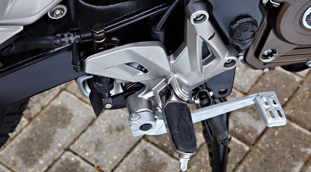 Ручки, рычаги, кнопки и приборы такие, словно всю жизнь с ними знаком. Удивил лишь способ крепления труб руля: тут установлены клипоны, как на «больших» спорт-«туристах». Вот только трубы, на которых и висят рукоятки, рычаги и пульты, закреплены в алюминиевых кронштейнах через резиновые демпферы, поэтому в руках руль немного «гуляет». Очевидно, это было сделано для борьбы с вибрациями (которых, кстати, изрядно), но вот не разболтается ли эта конструкция спустя какое-то время? И не получится ли так, что в руках будет «манная каша» вместо руля? Ответить на этот вопрос сможет лишь ресурсный тест. Пожалуй, это единственное замечание к эргономике, да и то перспективно-вероятное.