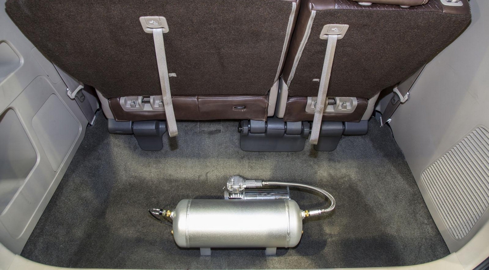 Двигатель снабдили сразу двумя турбокомпрессорами от компании Turbonetics, кроме этого потребовалась замена свечей зажигания, кованых поршней и шатунов, впускной и выпускной систем. Разумеется, тюнеры переписали программу управления двигателем, а также усилили сцепление и коробку передач. Взамен стандартной подвески минивэн получил пневмоэлементы, которые позволили изменять клиренс. Помимо этого, машина получила 20-дюймовые легкосплавные диски Fifteen 52, обутые в низкопрофильную резину Toyo Proxes. В салоне – шесть раздельных кресел Recaro, обшитых коричневой кожей, цифровая панель приборов, а также развитый каркас безопасности, который, впрочем, позволяет разместиться и на втором и третьем рядах сидений. Динамические характеристики компания не афишировала, но по неофициальной информации машина способна развить максимальную скорость свыше 300 км/ч.