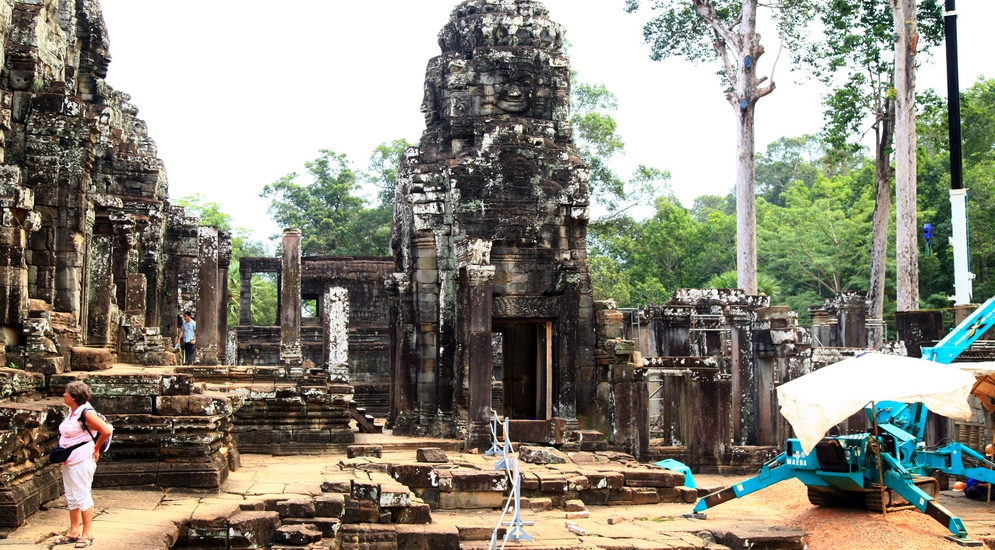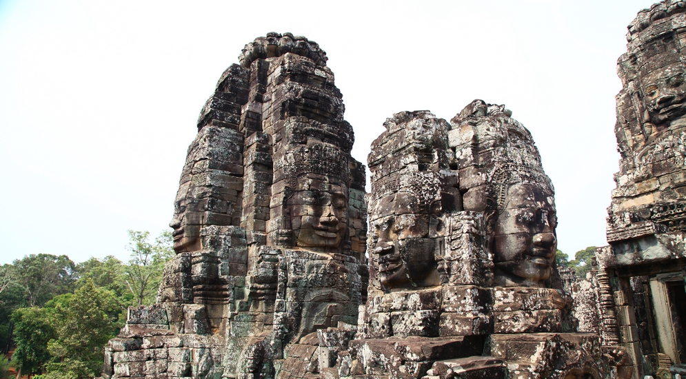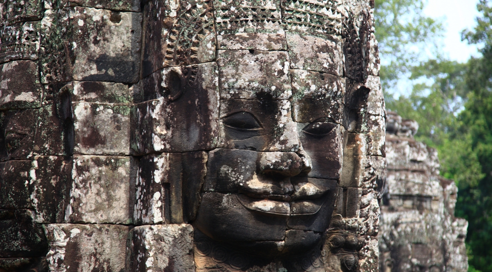 Именно он был столицей Кхмерской империи с 12-го до первой половины 15-го века, и представляет собой неприступный город-крепость, окруженный высоченными стенами и рвом, а центром его является бесподобный храм Байон, нисколько не похожий ни на один другой храм! Говорят, изначально строение насчитывало 54 башни, символизирующие 54 провинции, находящиеся под властью короля. На сегодняшний день сохранилось порядка 37 башен, а особенность в том, что каждую из них венчают по четыре лика, взирающих во все стороны света, и выражения лиц с каждой стороны разные. Особую ценность также имеют барельефы, повествующие о жизни древнего кхмерского царства: военных походах, разных церемониях, быте. После смерти короля Джаявармана VII в Камбодже не было возведено ни одного храма, хотя бы частично сопоставимого с Байоном.