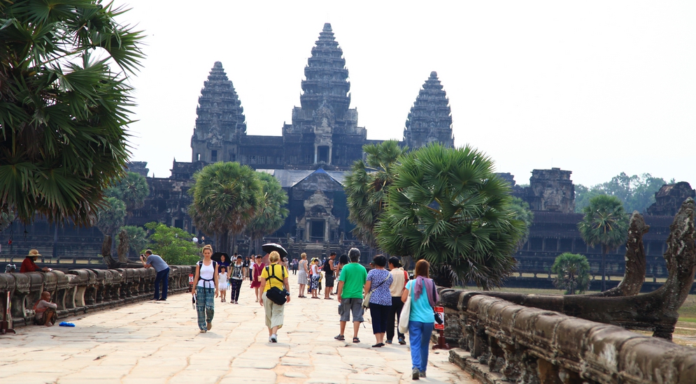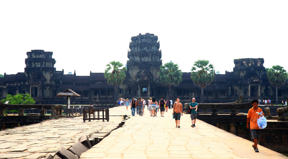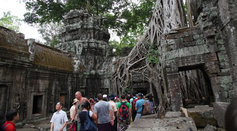 Ангкор – то место, ради которого большинство туристов и едет в Камбоджу. Когда-то Ангкор (что означает «священный город») был центром Кхмерской империи (пик ее развития пришелся на 9-15 века), в свое время он был крупнейшим городом в мире с населением, по некоторым данным, более 1 миллиона человек. Однако мы с вами видим Ангкор уже не как город, а скорее как город-храм, спрятанный в джунглях: в Кхмерской империи жилые и общественные здания строились из дерева, а оно за века под воздействием жаркого и влажного тропического климата, естественно, разрушилось.