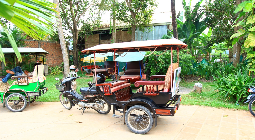 Я добиралась до Камбоджийских городов из Таиланда на машине и из Вьетнама на автобусе. На месте проще пользоваться услугами тук-тукеров (тук-тук – местная разновидность такси, крытые моторикши), но обязательно торгуйтесь с ними.