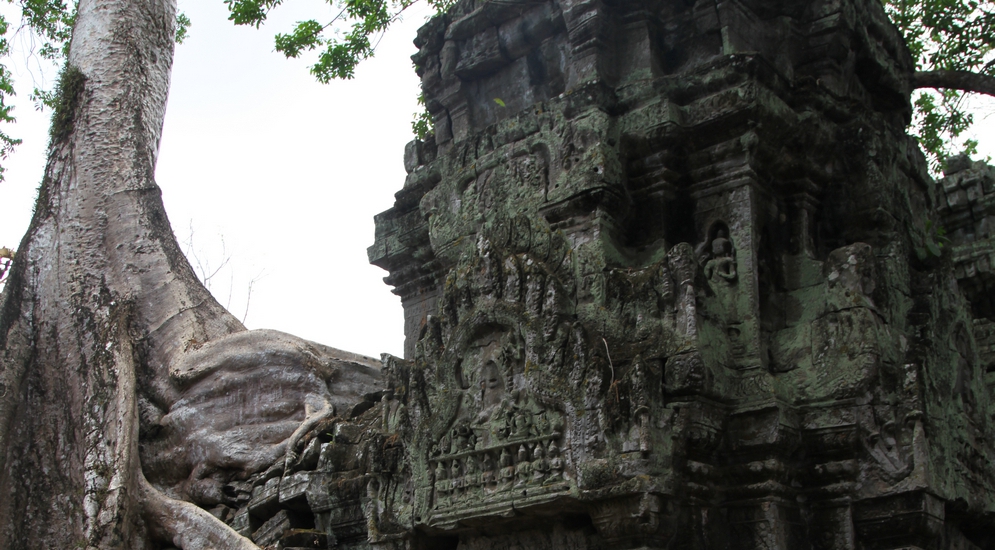 Та Прохм, построенный в период Джаявармана VII и освященный в 1186 году, как раз и стал местом съемок ряда сцен фильма «Лара Крофт: Расхитительница гробниц». А еще он весьма интересен тем, что в процессе реставрации его не стали полностью расчищать от джунглей. Корни многовековых деревьев обвивают стены храма, являя собой симбиоз природы и архитектуры, и это добавляет впечатлениям сказочности и таинственности.