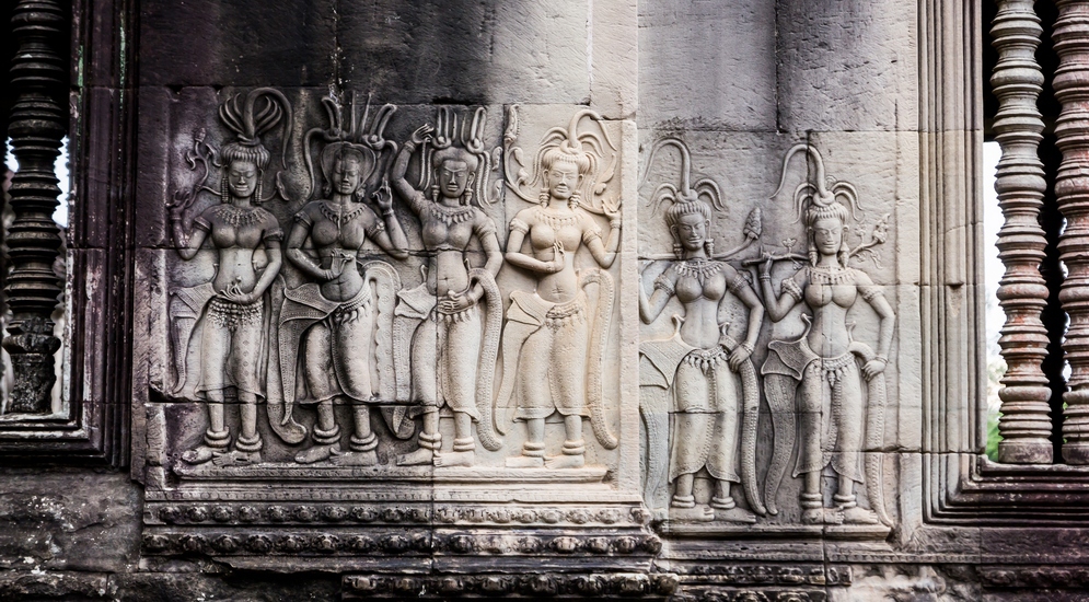 Галереи храма оформлены скульптурными барельефами, изображающими мифологические сцены, наиболее частыми участницами которых являются Апсары – небесные девы, полуобнаженные танцовщицы неземной красоты из древнего царства Индры, которые, наряду с башнями-лотосами, стали визитной карточкой Ангкора. Считалось, что апсара – не просто танец, а язык для посвященных. Сейчас же посмотреть на танцовщиц может каждый – например, рестораны в Сиемреапе предлагают исполнение апсара как приятный фон к общему ужину.