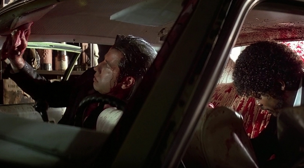 Четко представляя себе обоих гангстеров, Винса и Джулса, мрачных и решительных громил в черных костюмах, узких галстуках, с большими пушками за пазухой, режиссер в упор не видел машины, в которой парни отправляются на дело. А раз ее не видит он, значит, не увидим и мы – ни к чему это. Достаточно ограничиться крупными планами обоих актеров внутри авто и вселить в зрителей уверенность, что это надежная «рабочая лошадка», которая вывезет из любой передряги. По крайней мере, до тех пор, пока ее заднее стекло не окажется забрызгано мозговыми остатками «мертвого ниггера», которому не повезло в ней оказаться…