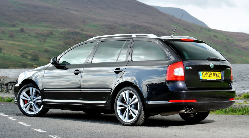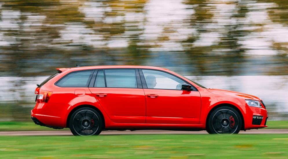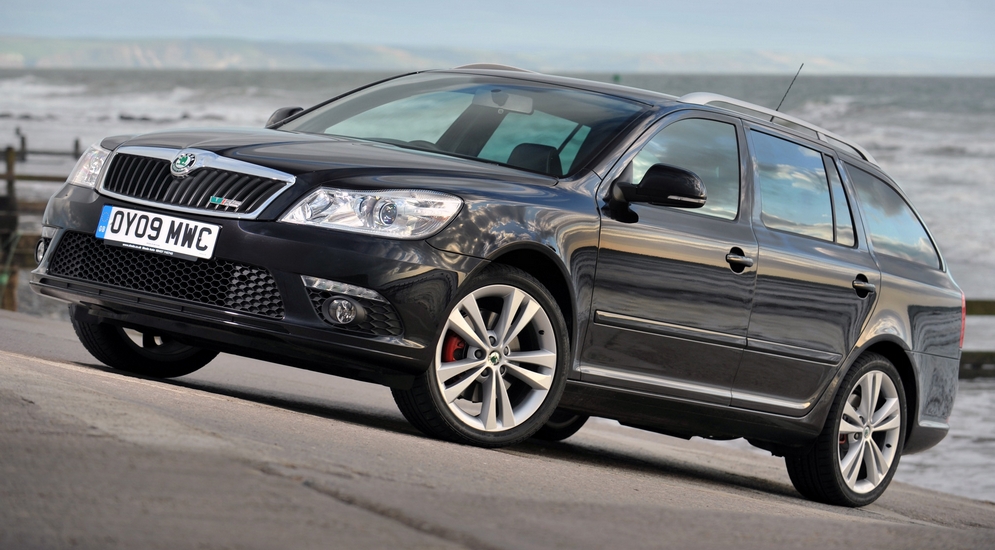 Открывает наш сегодняшний рейтинг горячих универсалов чешская Шкода. Модель Октавия в своей базе использует узлы и агрегаты немецкого Гольфа, а посему получила спортивную версию RS с агрегатами от хот-хэтча Golf GTI. Автомобиль последнего поколения был показан широкой публике в 2015 году, однако первые универсалы Octavia RS появились раньше, в 2009-м. И если немцы предлагают только заряженный хэтчбек, то чехи пошли дальше и снабдили свой универсал двухлитровым турбомотором мощностью 220 л. с., который, помимо всего прочего, развивает 350 Нм крутящего момента, передающегося на передние колеса с помощью фирменной «всеяфольксвагеновской» роботизированной коробки передач с двумя сцеплениями DSG.