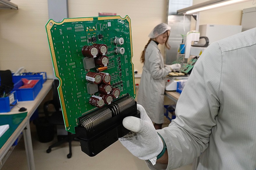 Всю необходимую для мехатронных компонентов электронику, включая инверторы для электропортальных мостов, муромцы делают самостоятельно. На заводе в специальном стерильном цехе со строгой системой пропуска осуществляется поверхностный монтаж плат электронных блоков и модулей (бесключевой доступ, блоки управления двигателем, салонным оборудованием, дверями, ЭРА-Глонасс и других). Набивка компонентов производится в автоматическом режиме на двух идентичных линиях. Первая была запущена в 2024 году, вторая – в 2025-м.