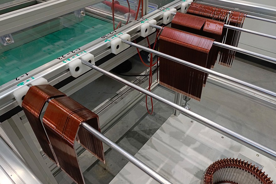 Особая гордость ММЗ – линия для производства электродвигателей – тоже приобретена на деньги ФРП. Статоры изготавливаются по самой современной технологии Hairpin. Или, говоря по-нашему, технологии «шпилек» (либо стержней). В отличие от традиционных технологий намотки, технология «шпилек» основана на использовании цельных плоских медных пластин, которые вставляются в пакет статора. Эти медные пластины – те самые «шпильки» – выполнены из эмалированной медной проволоки, изогнутой в форме буквы «U», напоминающей дамскую шпильку-невидимку для волос.