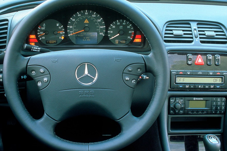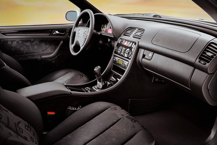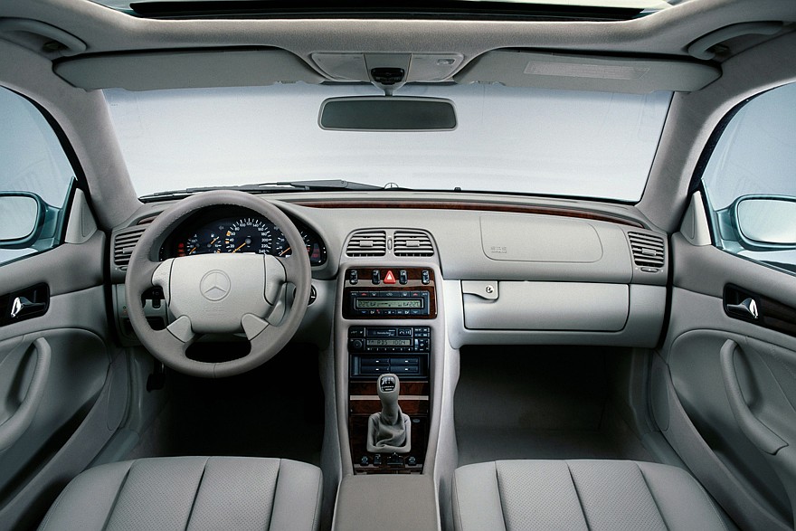 Уже в базе машина получила передние и боковые подушки безопасности, ABS и ASR, электропривод и подогрев зеркал, систему экстренного торможения Brake Assist, легкосплавные диски, усилитель руля, центральный замок, электростеклоподъёмники. Внутри купе было похоже на Е-класс, но именно похоже, поскольку панель получилась какой-то более легкомысленной, что ли.