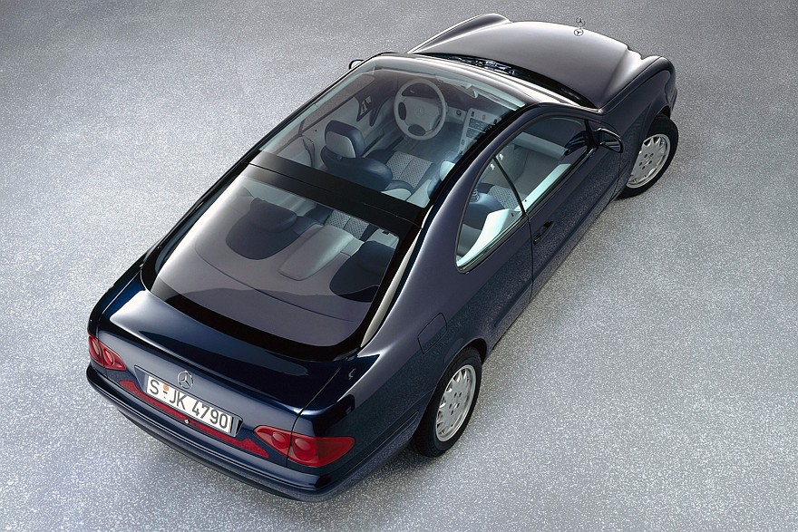 Несмотря на очевидное внешнее сходство с новой «ешкой», представленное в 1997 году купе с индексом C208 стало обманщиком поневоле. Ради снижения себестоимости хитрые мерседесовцы использовали более дешёвую и компактную платформу «цешки» W202. На это четко указывает колесная база купе (2690 мм), хотя, на первый взгляд, между классическим передком С-класса и квартетом эллиптических фар купе нет ничего общего. При этом силуэт получился несколько несбалансированным, ведь у купе С124 разные размеры боковых стёкол были гармонично компенсированы строгими линиями самого кузова, в то время как биодизайнерский замыленный облик новой двухдверки немного напоминал какую-то диковинную четырёглазую рыбу, пухлое серебристое пузо которой было не таким изящным, как у предшественника.