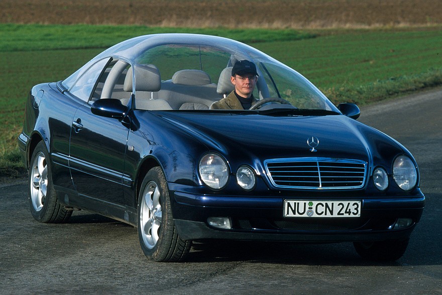 Mercedes-Benz CLK-Klasse Glass Roof Experimental Car. Создан в единственном экземпляре. За рулём этого «пузыря» – сам Майкл Финк