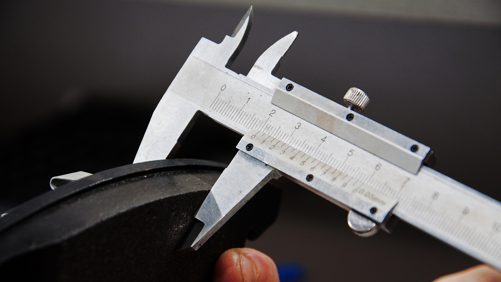 А теперь возьмём в руки штангенциркуль и измерим толщину всех колодок. На всякий случай измерять каждую колодку будем в трёх местах.