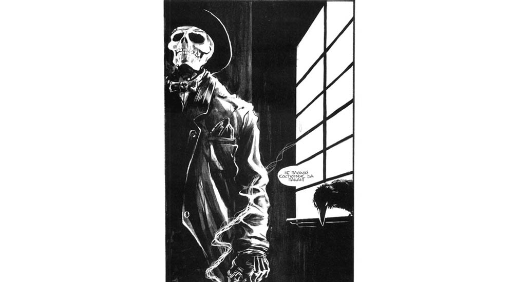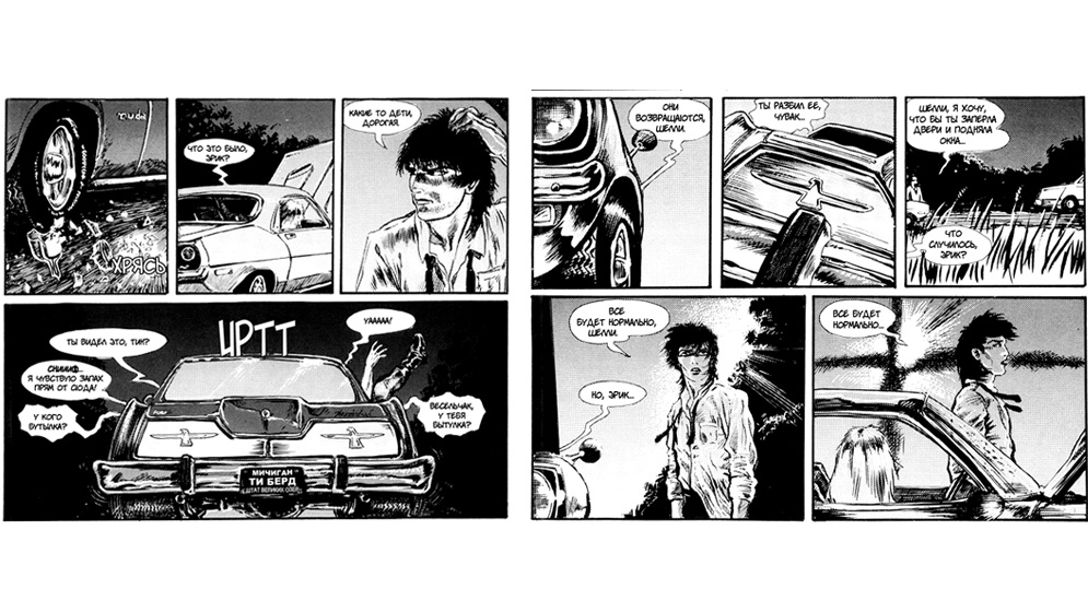 Тот самый комикс Джеймса О’Барра. Все атрибуты «Ворона» налицо: влюбленные, Ти-Бёрд, ангел смерти в характерном гриме…