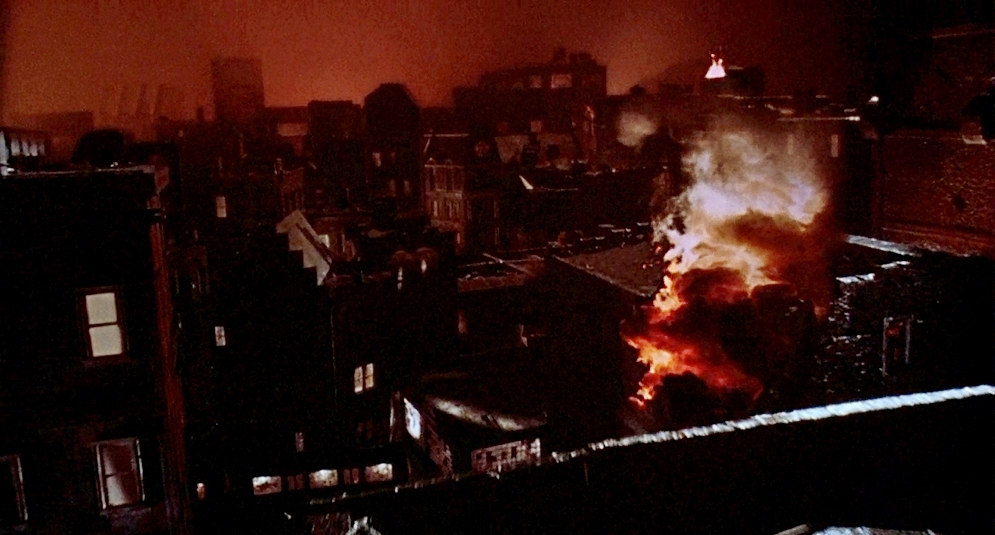 «Вот уже 10 лет ночь перед Хэллоуином называют в нашем городе другим страшным именем – Ночью Дьявола. Она превратилась в ежегодную казнь огнем. В прошлом году было отмечено более 200 пожаров. В огне погибло 11 человек…», – вещает перепуганный диктор с телеэкрана (кадр из фильма).