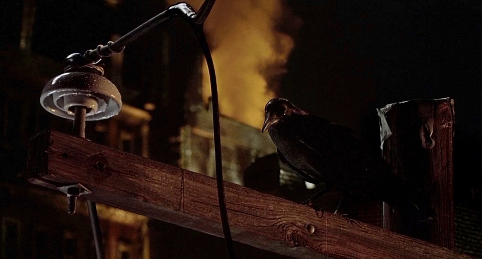 Почему Эдвард Пресман взял режиссером рекламщика? Потому что это абсолютно безбашенные люди, способные креативить днями напролет и решать сложные задачи малыми средствами. Алекс Пройас оправдал свою квалификацию на 200%, сняв драматическую нуарную ленту с максимально приближенной к первоисточнику атмосферой. Он очень любил комиксы О’Барра и вообще хотел снять черно-белый фильм с контрастом цвета лишь во флэшбеках воспоминаний Эрика, но руководство Entertainment Media на такие эксперименты пойти не решилось. Тогда Пройас снял большую часть картины в монохроматической цветной теме, смешанной с красным и темно-серым. Благодаря оптическим трюкам, наложению фильтров и мастерской режиссерской работе по построению визуальных образов, изображение получилось как будто выцветшим, идеально передавая атмосферу детройтских трущоб с их тленом, развратом и коррупцией.