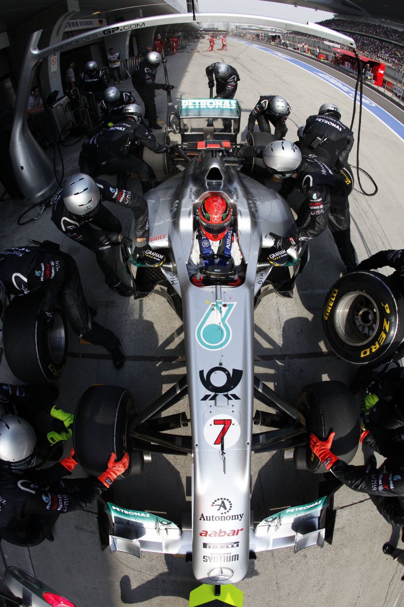 Чем запомнился по ходу уик-энда? Как и на протяжении прошлого сезона, в начале нынешнего Шумахер боролся по большей части не столько с соперниками, сколько с собственным болидом. Зато как только его Mercedes поехал, как следует, а сам Михаэль адаптировался-таки к современным покрышкам – мы тут же увидели если не прежнего «Красного барона», то, по крайней мере, гонщика, представляющего собой весьма и весьма грозную силу. По ходку гонки Шуми отыграл шесть позиций, причем в середине пелетона, где борьба кипит порой не менее упорная, чем сражения за места «в призах»! Единственное, за что можно упрекнуть Михаэля – это то, что его напарник Нико Росберг все равно выступил в Шанхае лучше.