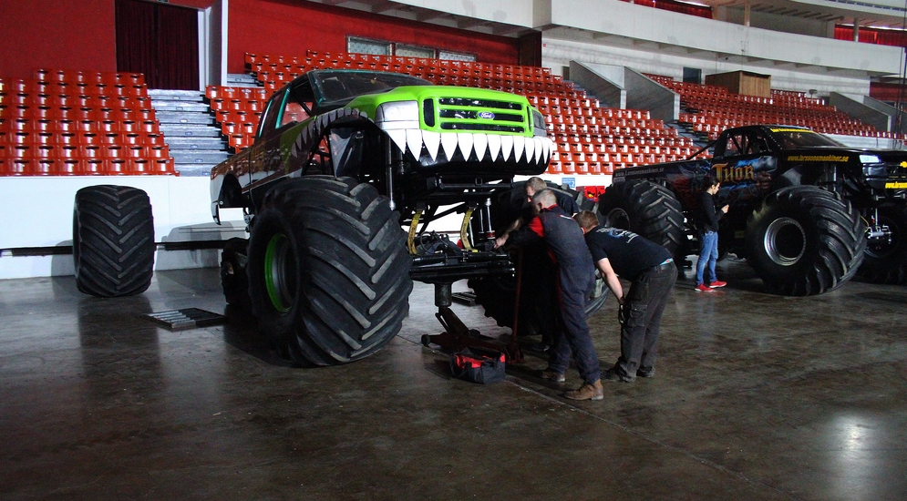 Сборкой монстров занимаются сами пилоты, а вместе с шоу "Монстр-мания" ездит всего 8 человек сервисмэнов. Сборка перед шоу занимает целый день, так как, помимо установки колес, необходимо проверить абсолютно все системы, чтобы не возникло непредвиденных проблем во время исполнения каких-либо трюков.