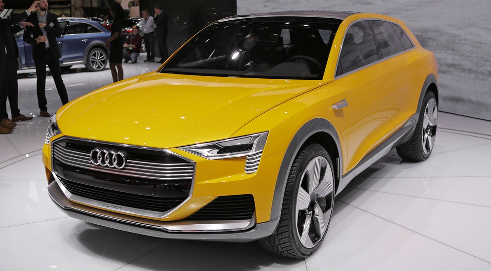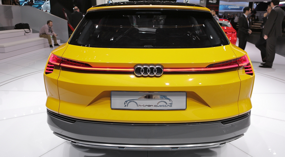 В двух шагах от универсала расположился концепт-кар Audi h-tron quattro, который оснастили силовой установкой, состоящей из двух электродвигателей: 90 кВт (чуть более 122 л.с.) на передней оси и 140 кВт (более 190 л.с.) – на задней. Энергию кроссовер берет от электрохимического генератора, питаемого емкостью с водородом, а накапливается она в литий-ионной батарее.