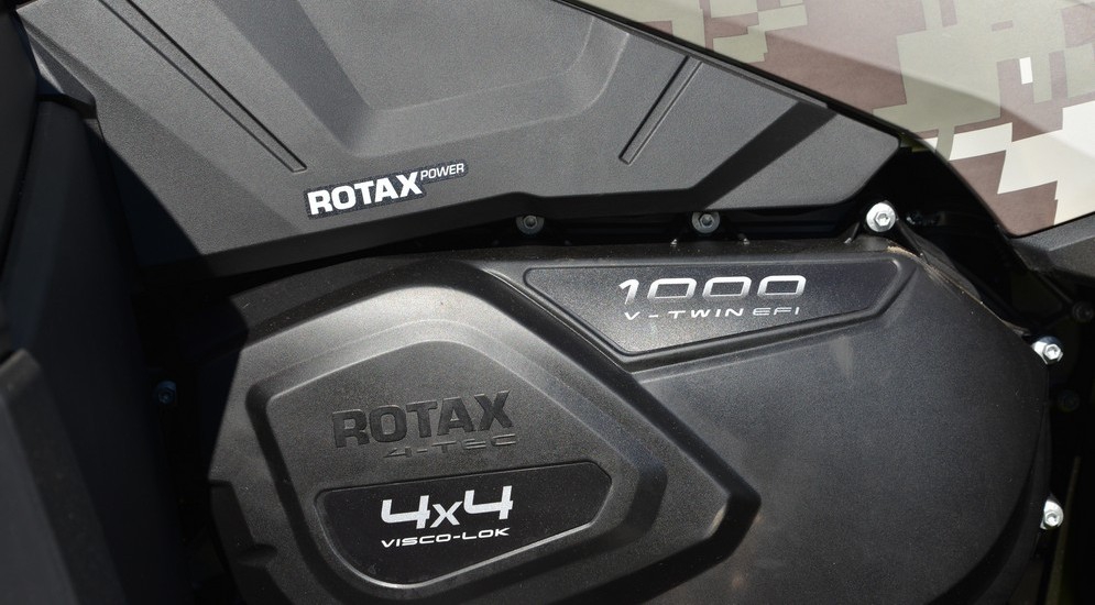 В основе квадрика лежит вполне «гражданская» модель Outlander Max. Двухместный квадроцикл с топовым, V-образным двигателем жидкостного охлаждения, рабочим объемом 975 см3 и мощностью 82 л.с. Правда X MR, или, как его ласково называют в России – «Хмырь» — сугубо одноместная машина. Все же его удел – жесткое рубилово в грязи и гонки, а с пассажиром в таких условиях делать нечего. Двухместная платформа с растянутой колесной базой позволила сохранить геометрический баланс, ведь у «грязевика» за счет установки большей резины заметно увеличен клиренс относительно обычной версии. Значение дорожного просвета «по документам» у них одинаковое, однако на «хмыре» установлена 30-дюймовая резина ITP Gorilla Silverback с просто нечеловечески огромными грунтозацепами. У трактора «Беларусь» елочка на колесах меньше, чем тут! На базовой же машине стоит 26-дюймовая резина вполне «мирного» рисунка. А четыре дюйма разницы – это практически 10 см.