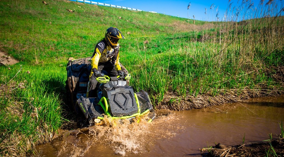 Такие «особо внедорожные» квадроциклы появились не вчера, и придумали их вовсе не многоумные инженеры и маркетологи в дизайн-центрах мировых производителей. Их придумали простые парни, квадроциклисты и гонщики, которым приходилось гонять по совсем уж засадным топям, болотам и жижам. Обычно такие «интересные» места встречаются на всевозможных соревнованиях вроде «Ладога-трофи» и иже с ними, где спортсмены могут «ехать» три километра восемь часов. В нормальных-то условиях любой, даже очень большой любитель грязищи, такие топи предпочтет объехать по кромке или вообще не соваться. Но на гонках-то совсем другое дело – если КП расположилось посреди самой глубокой болотины – то, значит, надо ехать именно в эту самую болотину. Вариантов-то нет.