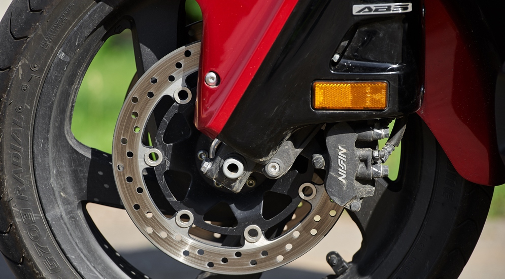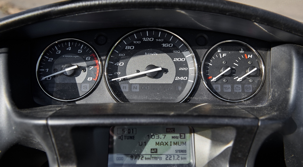 При всем этом богатстве, аппетит у двигателя более чем скромный. Городской рваный режим, с постоянными «выстрелами» со светофоров (просто, чтобы не мешаться никому, не подумайте), облегчает бак примерно на 8 литров каждые сто километров. Какой-нибудь 600-кубовый спортбайк с удовольствием скушает и больше, потому что мотор «голды» лишь слегка выходит за пределы холостых, а «шестисотку» нужно постоянно выкручивать «в звон», чтобы она хоть как-то ехала.