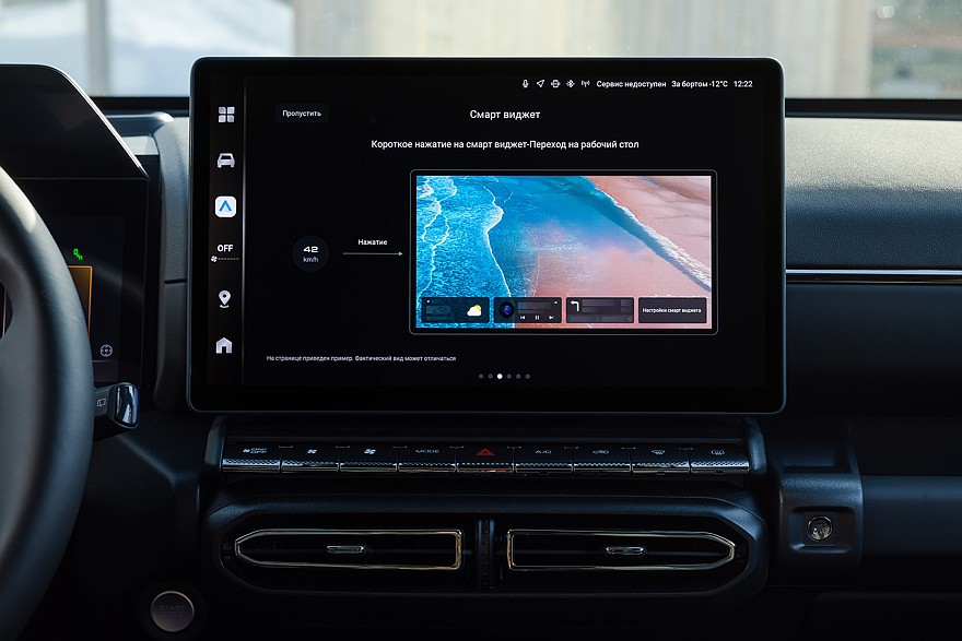 Но самые любопытные дополнения получила медиасистема. Во-первых, в ней прописались сервисы VK-Видео и VK-Музыка, то есть теперь любимый контент можно получать без телефона и дополнительных подключений. Ну а во-вторых, на головном устройстве появилось приложение под названием «Смарт виджет +». На экране оно выглядит как небольшой кружок, выводящийся на экран поверх любых приложений, который можно расположить в любой части. По умолчанию в этом кружке есть показатель текущей скорости, но можно настроить быстрый доступ ко множеству функций.