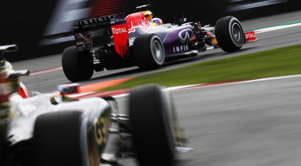 Тем не менее борьба на стартовой прямой была, и еще какая. Даниил Квят прорвался на третье место и с легкостью более половины дистанции удерживал темп, позволявший ему эту позицию никому не отдавать. Риккьярдо повезло меньше. Пока он бодался с пилотами Williams, мимо него попытался проскользнуть Феттель, зачем-то решивший, что вся трасса принадлежит только ему. В результате этой самоуверенности у немца начало спускать заднее колесо. Еще до старта, на пресс-конференции после квалификации, Феттель очень остроумно шутил про то, что Хэмильтон с Росбергом могут выпилить друг друга в первом повороте, и он спокойно проедет мимо них, но в итоге сам совершил аварию, напрочь лишившую его надежд на финишный подиум.