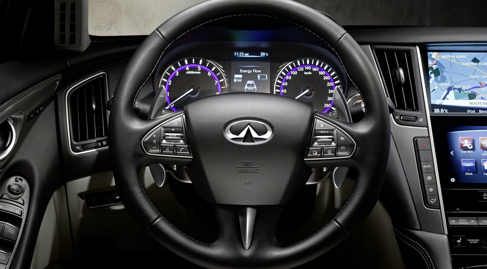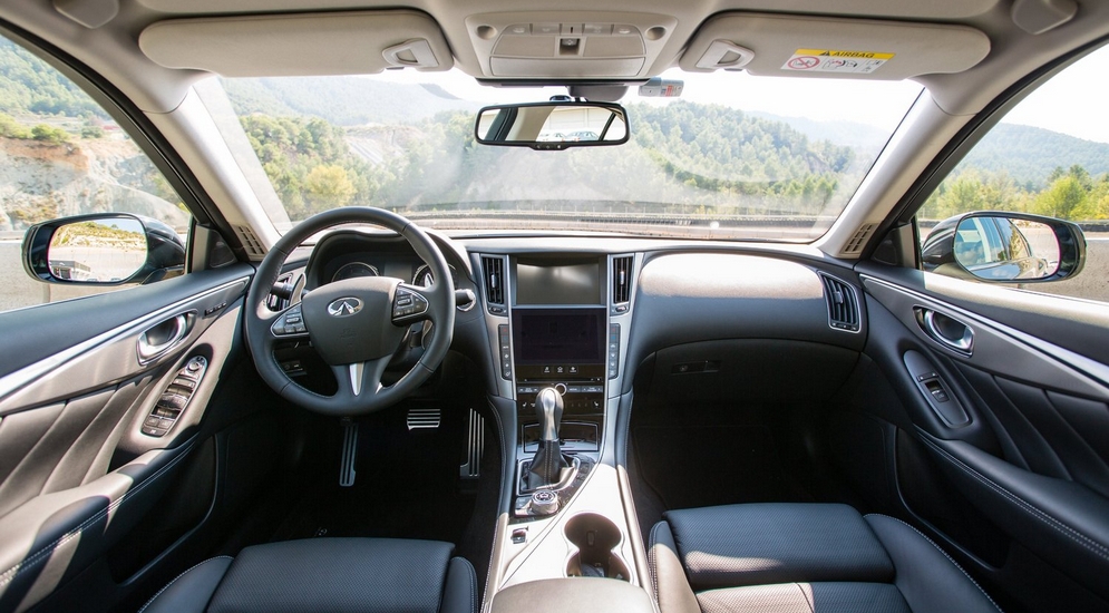 Стартовая цена в 1 673 500 рублей выглядит на фоне «одноклассников» аттракционом неслыханной щедрости. И базовая комплектация отнюдь не бедная: климат-контроль, круиз-контроль, электропривод крышки багажника, мониторинг давления в шинах, подогрев передних сидений, фирменный контроллер Infiniti Drive Mode Selector, сенсорный дисплей с «картинкой» с камеры заднего вида. Диски, само собой, легкосплавные, более того – в пределах двух миллионов мы можем позволить себе и исполнение Premium (1 935 000 рублей), где они будут 18-дюймовыми вместо стандартных «17-х». А еще – кожаный салон, датчики света и дождя, кнопка запуска двигателя, электрорегулировки руля и сидений с памятью, светодиодные фары. Если же поступиться некоторыми из этих опций, можно взять комплектацию Business + NAVI за 1 962 500 рублей, оснащенную навигационной системой, что понятно из названия.
