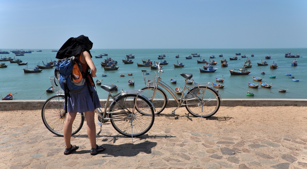 Туда-то мы и отправились. Сам Фантхьет знаменит своим крупным рыболовецким портом, а один из 16 городских кварталов – Муйне, расположенный на одноименном мысе, – стал популярным курортом. В самом Муйне железнодорожной станции нет, так что, прокатившись на поезде, мы пересели в локальный автобус, и по дороге до отеля непрерывно глазели на сумасшедшее количество велосипедистов и скутеристов. И как только они не сталкиваются в этом безумном трафике…